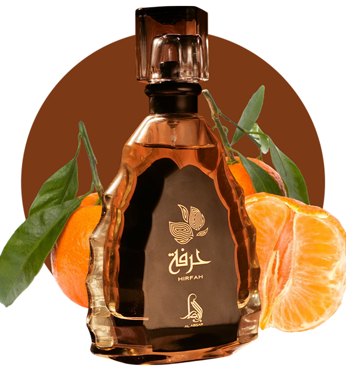 A captivating blend of Mandarin, Pink Pepper, and Pear in the top notes, followed by a heart of Creamy Jasmine and Lavender, and anchored by Musk, Ambergris, and Vanilla in the base notes. Encased in a glass bottle with a crystal cap engraved with its name, Hirfah embodies elegance and allure in every spritz.
